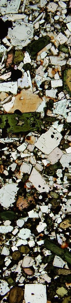 Dünnschliffaufnahme (xPol) von Olivin-Melilithit vom Armykon hill: